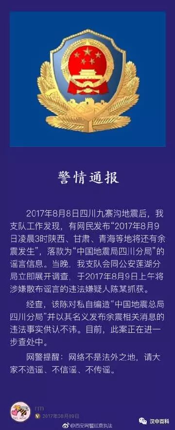 @西安网警巡查执法: 西安警方查处地震谣言信息