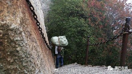 【华山挑夫:担140斤走2公里,可能无人再接班】何天武,陕西省汉中市镇巴县长岭镇人。华山挑夫真的老了。已经55岁的独臂挑夫何天武背着140斤货物前往五云峰饭店,路程约2公里,他拄着“丁”字拐,一步一个石阶。上华山近18年,何天武一人一背篓一木拐杖,挑遍华山各个山头;华山挑夫也从200人剩下现在不到20人。还能挑多少年?何天武心里没底,“挑到六七十岁,挑不动了就回老家去”。53岁的党成娃觉得,他们可能是华山最后一批挑夫。“现在都是50多岁的,年轻人都不愿来”。