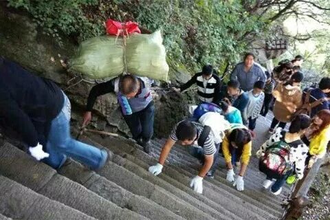 华山最值得提的其中之一便是日出了,还有那惊悚的长空栈道。而自己个人经历记忆最深却是一路石梯每隔一段就有的服务站点,好奇矿泉水和方便面等等这些物资是怎么来的,而且越是往山上走这些东西的价格也越贵。对于一碗泡面19.9元的价格表示不满,认为是坐地起价。后来听朋友说才知道了“挑夫”这个职业,就能理解物价高昂了,也惊叹于这个行业劳动人民的伟大。